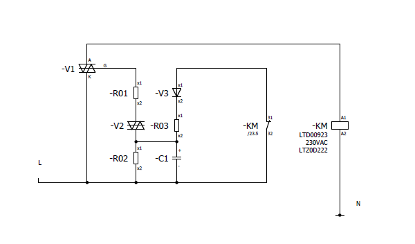 pri takomto zapojení sa ten triak nikdy neotvorí, pretože je preklenutý zopnutým kontaktom a po privedení napätia stykač okamžite zopne. skôr by mal byť kontakt KM spínací, aby po oneskorenom zopnutí stykača premostil triak