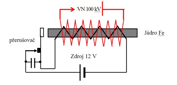 A ten kondík tam být musí, nejen jako rezonanční, ale i kvůli zhášení jiskry na přerušovači. Protože jinak přerušovač z principu bude tahat oblouk jak divý a VN to dávat prakticky nebude.