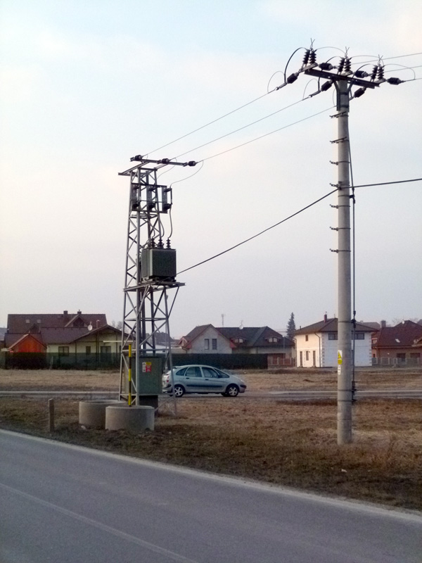 Objekt je napojen z VN, kde je tedy na pozemku betonový sloup, trafo a rozvaděč. V podstatě jak na obrázku. (obrázek není reálný).