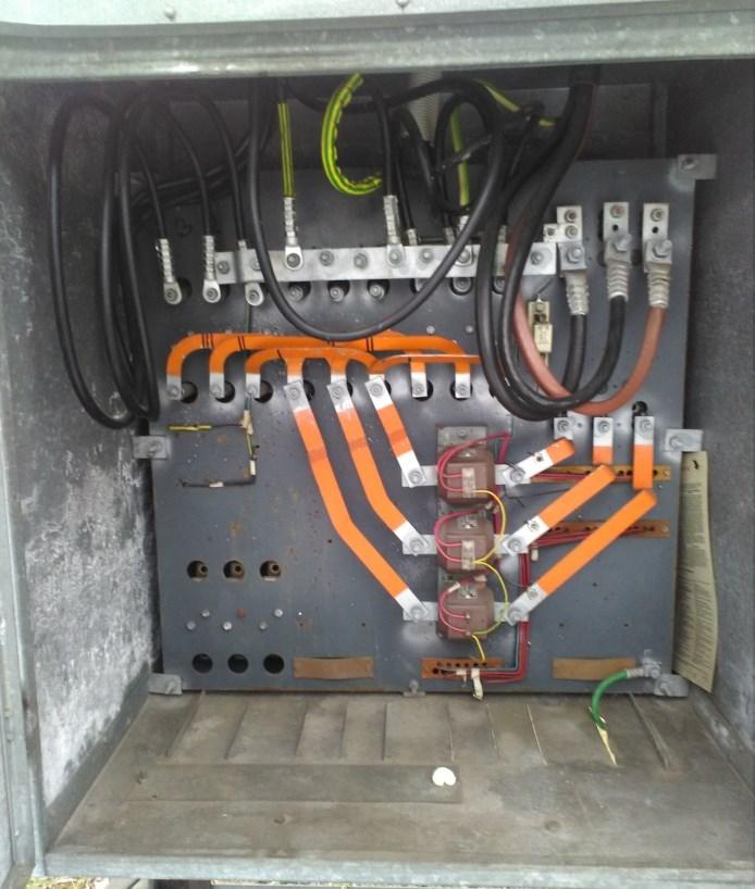 Ta bedna je totiž otvíratelná z obou stran, a ze zadní strany jsou přístupné všechny silové propoje a měřící transformátory proudu pro napájení proudových cívek elektroměru, který může být instalován ale z přední strany bedny společně s hlavním jističem a dalšími jističi vývodů. Nebo také s pojistkovými odpojovači.