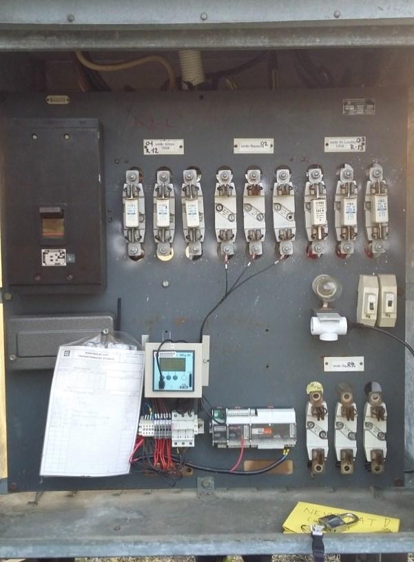 U nás v okolí na tyto plechové bedny resp. na stožár trafostanice montovali z boku plastový rozvaděčkterý obsahuje vše potřebné.