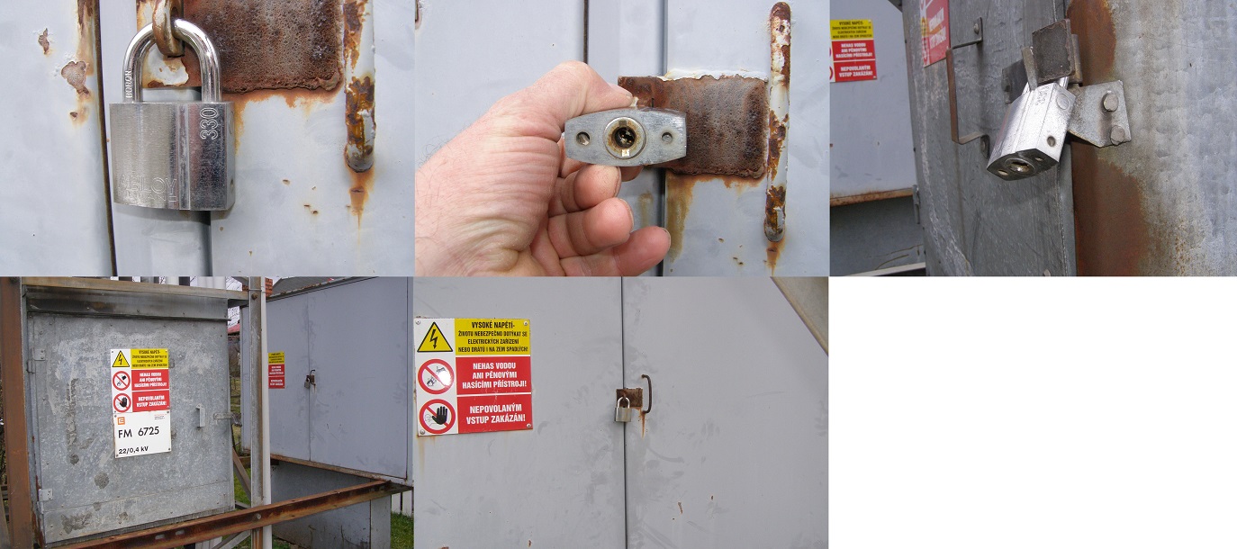 K tomu visacímu zámku - je několik typů. S červeným vybarvením je na vysoké napětí (zámek na primární klíč), s zeleným je na nízké napětí (zámek na sekundární klíč). To už padlo, dnes jsou bezpečnostní speciální fabky.