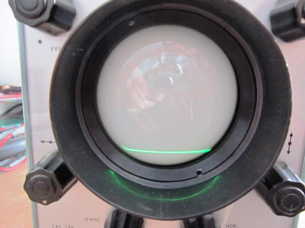 Možná se s tím někdo z Vás už setkal a nebo někdo bude vědět na co se zaměřit. Svitkové kondenzátory a elektrolyty jsem vyměnil za nové, taktéž některé odpory které jsem našel doma. Zbytek budu objednávat. Dám sem obrázek toho paprsku a také to rozostření.
