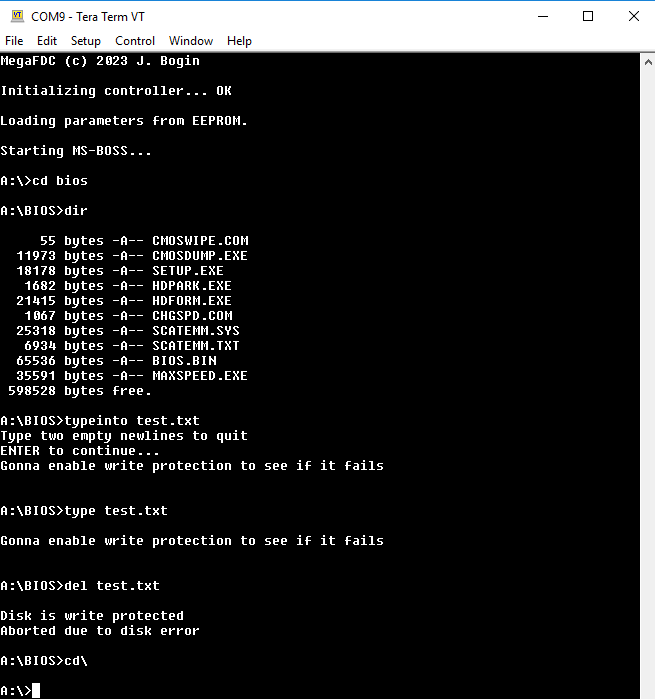 S týmto bastlom, kde používam AVR Mega2560, je k dispozícii trocha viac RAM, takže je možné použiť väčší diskový buffer a riešiť viac sektorov naraz - 1.44MB 3.5" idú za tri minúty a štyridsať sekúnd miesto desiatich, päťpalce do dvoch minút, osmipalce do minuty. Ako experiment som tomu dorobil podporu na čítanie 250K CP/M (MIKROS) osmipalcov + jednoduchý zápis (mazanie). Je možné ešte nahodiť úplne divné geometrie či veľkosti sektorov + to uložiť do EEPROM, aby si ich arduhnilo pamatalo i po reštarte.