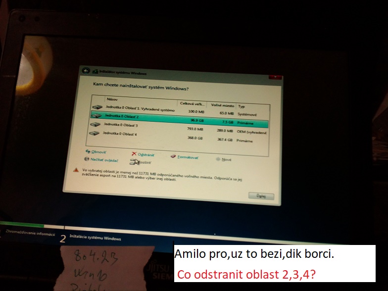 porad co odstranit nech instalujem dalej. OEM oblast 3 neviem cisa moze odstranit .aj preto sa pytam.