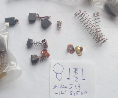 Zhanam z pouzitych ulikov od vrtacky,karbo brusiek malych a velkych pruziny a rozne kontaktne pliesky.Aj cele zodrate na ND!Tiez ak mate uhliky 5X8 dlzky min 10mm a 5,5X9mm min dlzky 10mm.Tiez ponuknite ake mate uhliky uz nepotrebne.za rozumnu cenu.dik