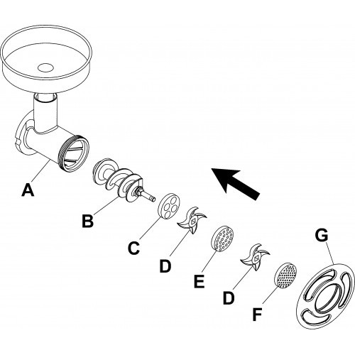 Hneď vopred prehlásim, že nemám patent na rozum a svoj mlynček na mäso používam iba keď si robím tatarák, aby som videl, že je to celé čisté a nebolo pred tým mleté nejaké žrádlo pre psa - na tejto fotke (jedná sa o reklamu) spomínajú, že ich nožík má čepele obojstranné - a prvá šajba ide tiež hneď za šnek, ako v odkaze od Workharda. I keď je pravda, že to na fotke od Workharda nevyzerá, že by mali tie dva nože zrovna obojstranné čepele - možno je tá fotka iba ilustračná.