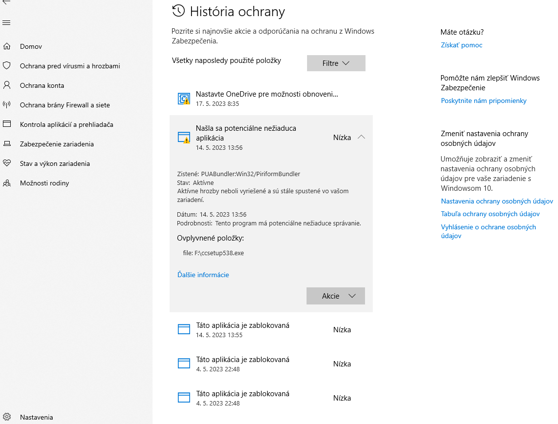 Ten ccsetup538 v "hrozbách" je CCleaner; OneDrive od teba chce nejaké automatické zálohovanie. Jedno i druhé ignorovať. Čomu nerozumieš, toho sa nechytaj, aplikácie a odkazy ktoré nepoznáš, neotváraj, na podozrivé prílohy neklikaj a budeš v cajku.