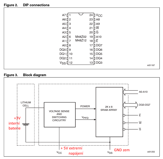 Používat M48Z02 s vestavěnou baterií je dle mého názoru v dnešní době už pasé když existuje v podstatě plnohodnotná náhrada v podobě paralelní paměti FRAM, která žádnou interní baterii nepotřebuje.