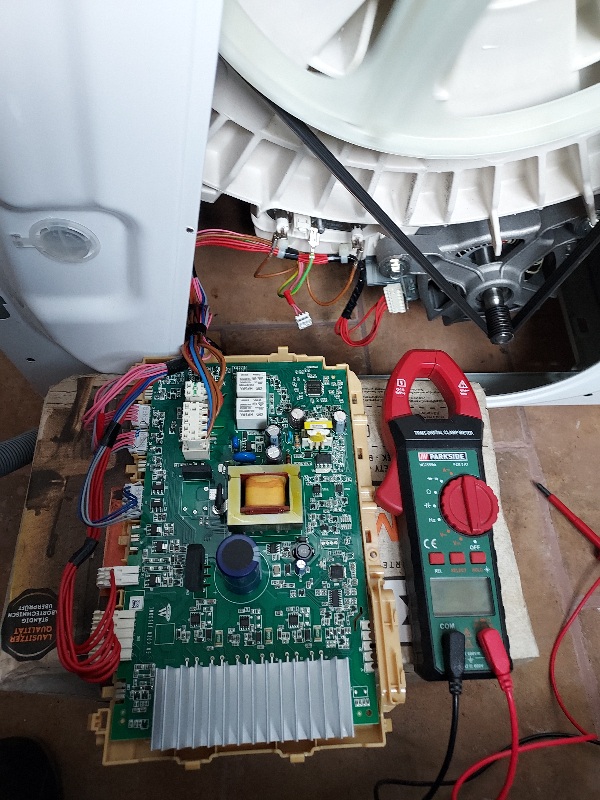Relativne nova 3r. pracka so 6. zmyslom perie normalne, ale zial bez ohrevu a bez vyhlasenia chyby. Vyhrevne teleso ma 30ohm a snimac 26kohm, kable premerane az po riadiacu dosku. 2x rele v serii s kazdym koncom vyhrevneho telesa su funkcne, len nedostanu z elektroniky signal na zopnutie. Ked snimac teploty na skusku prekleniem 2k odporom alebo ho odpojim, tak pracka po case vyhlasi chybu snimaca teploty a odstavi sa.