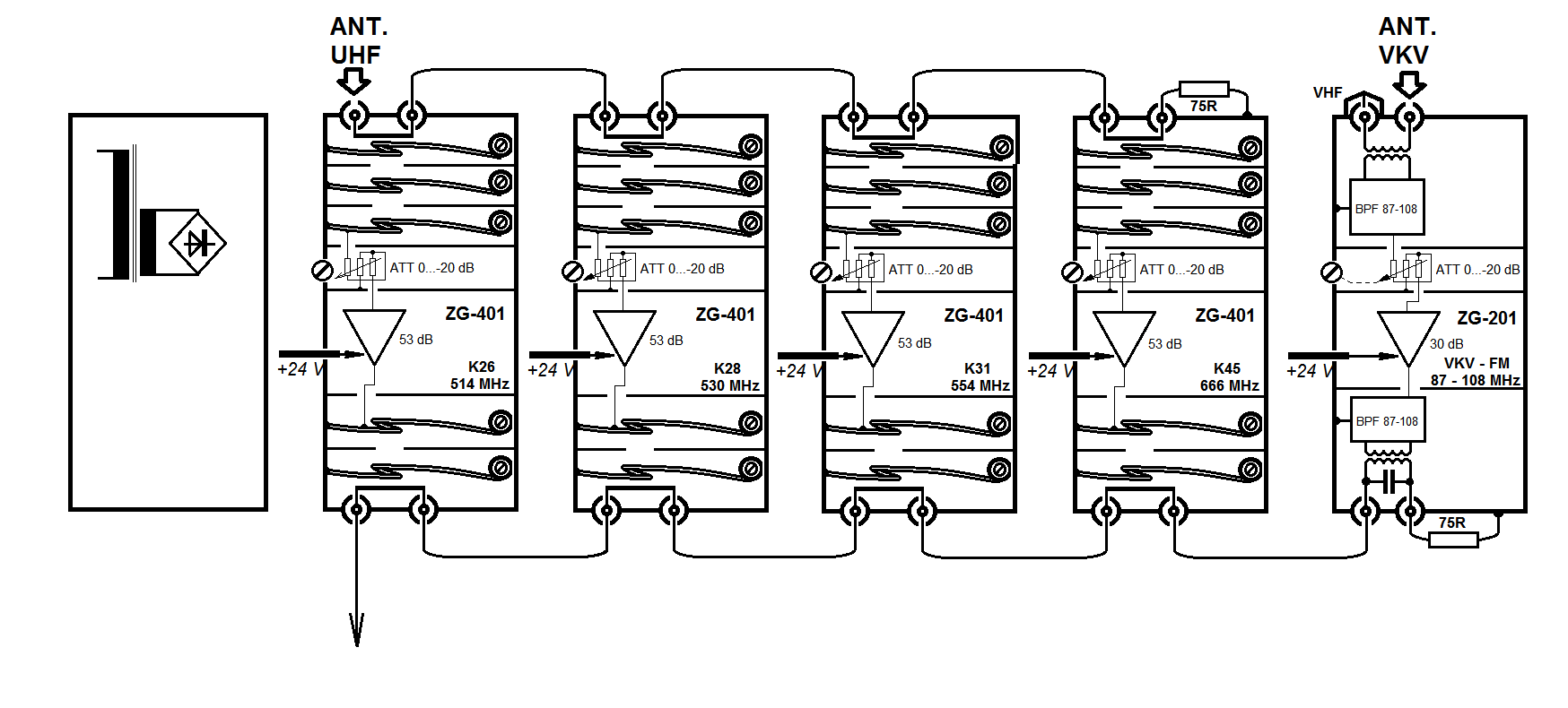 Ty kanálový slučovače je přesně to co jsem měl na mysli, to se mi nepodařilo najít, ty tam zkusím objednat, a snad to bude lepší, a možná se k tomu povede přimíchat i VKV,to by bylo supr. Mám to na živení skoro celýho baráku, máme větší barák takže v každým ze 4 pater je minimálně jedna televize, a v patře z pokojema je 5 televizí, + telka v dílně v podkorvý obyvák a výstavka, většina až na pár kusů jsou CRT at už novější nebo starší, a pár kusů jsou Plazmy, a všechno až na 2 televize v baráku jede na tohle STA, na CRTčkách to jede krásně,až zatím na to rušení se mezi sebou, a na plazmách se to dá překousnout protože se na ně nedíváme tak často, a když už je ouvej tak na ně můžem chytit ten jeden DVB-T kanál kterej je v HD. A videa a rekordéry z toho taky jedou. Takže jak říkám jede z toho skoro celej barák, je to mnohem pro nás teda lepší příjemnější, a nostalgičtější řešení než mít všude set top boxy. Hlavní výstup je vlastně napojenej na anténní rozvod po baráku. Já jsem před tím než jsem to začal vytvářet koukal na všechny ty alcadácký věcičky modulátory a vložky, ale to by to vyšlo finančně ještě skoro 2x víc než ted, a že už ted to byla pecka,a to to není ještě hotový.