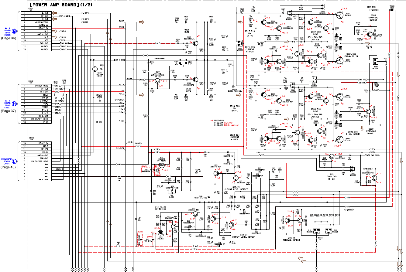 Vzal bych to z emitorů "mutovacích" tranzistorů, označení je kvůli mizernýmu rozlišení komprimovanýho obrázku nečitelný, ale jsou to ty dva co jsem červeně orámoval na mnou upraveným schématu. A určitě oddělit kondíkama a za kondíky posadit operák zapojenej jako sledovač, postačí TL072 - tím se docítí toho, že další připojený obvody nebudou mít měřitelnej vliv na signál vstupující dáldo koncovýho zešilovače.