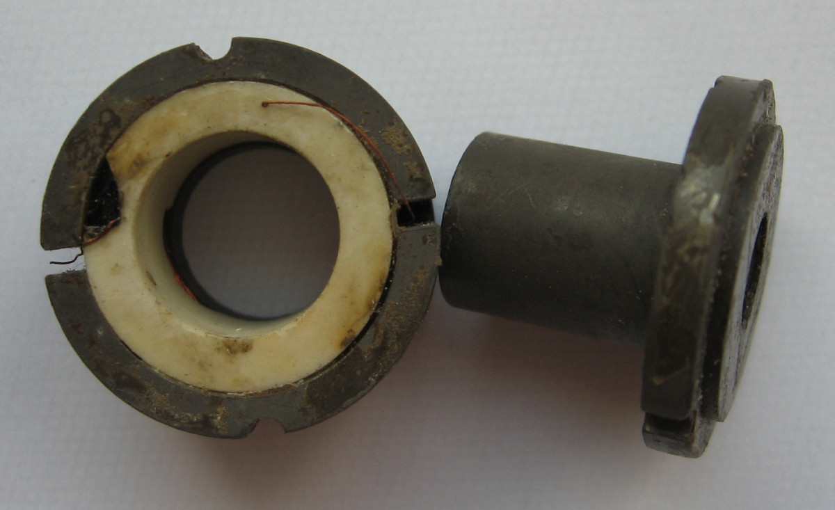 Takhle vypadala železová (ferrocartová) hrncová jádra, vyráběla se ve velikostech 14x12, 23x18 a 36x27. Zastaralé a neperspektivní byly už někdy v polovině 60. let.