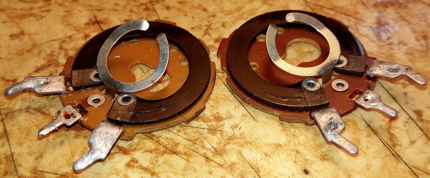 Čím dál častěji narážím na rozpadlé teslácké trimry - to nejběžnější pertinaxové provedení ze 70. a 80. let, kde jezdec drží za dva jazýčky. Ty jsou z mosazi, po letech praskají a jezdec upadne. Dělají to jen některé šarže, ale časem se to bude určitě zhoršovat a už teď se dá narazit na přístroje, kde se ty trimry rozpadly všechny.