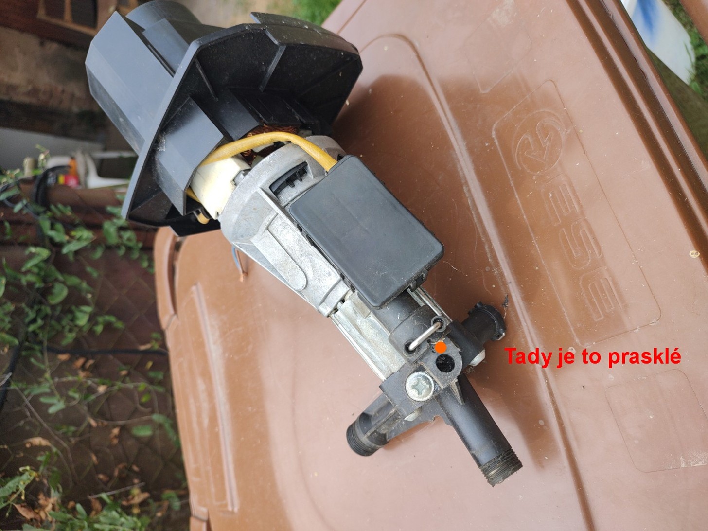 Tlaková myčka. Toto mám a mohu ti poslat. Normálně do poslední chvíle tlakovala a prasklinou stříkal plný tlak. Jestli máš zájem tak pošli do SZ adresu, kam bych poslal. Daruji, jen bys platil poštovné na dobírku.