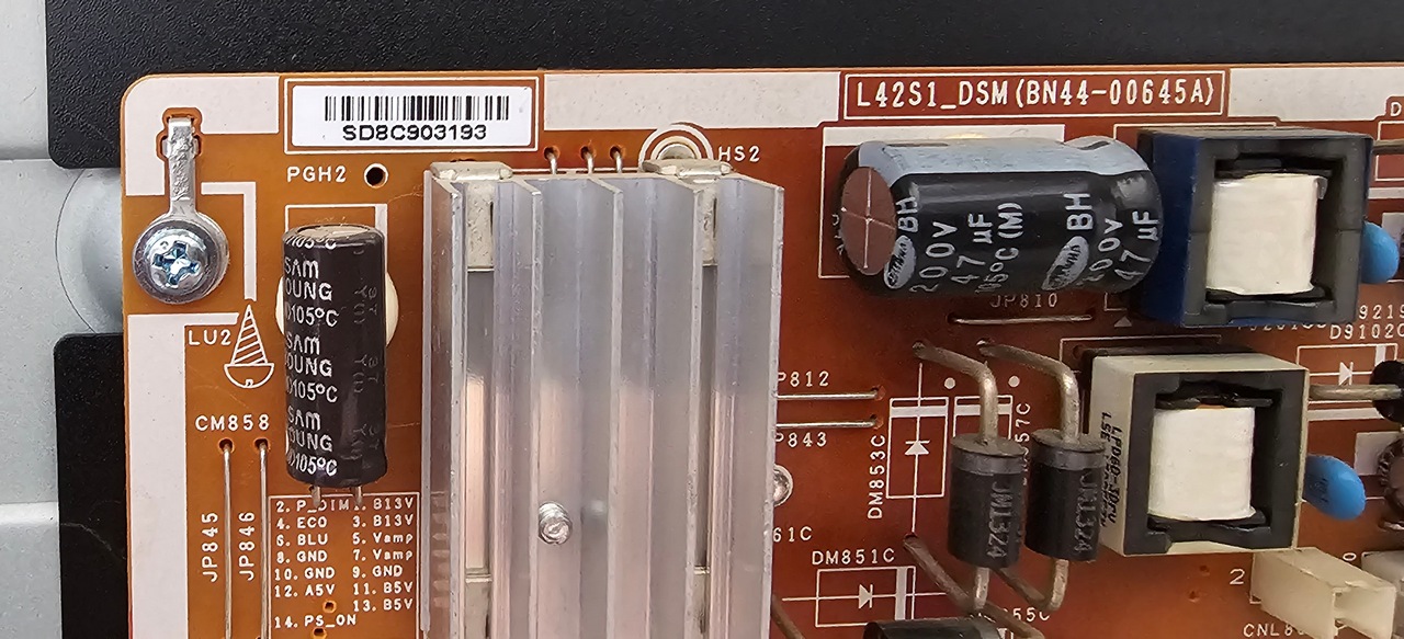 Ahoj, dostal jsem tuhle telku že nejede a opravdu nejede Smile 2krat rychle po sobě blikne, moment pauza a znovu. To celé 5krát. Hlavní elit 325V, u konektoru pro led podsvit/vpravo nahoře/ tak na obou nad sebou elitech když zapnu tv tak je tam 68 V a jak začne led blikat tak napětí padá dolu. Blikačka skončí, svítí červená led a na kondenzátoru je opět 68V a furt dokola. TV se snaží nabootovat, asi. Odstranil jsem panel a přes led tester podsvitu jsem vyzkoušel led bloky a všechny led svítí stejně, na displeji byla nějaká hodnota, jsem to zapomněl, ale tak nějak na stejno u všech bloků. po levé straně je další konektor který jde do druhé levé desky že bych ten konektor oměříl při zapájeném kabelu ale nedostanu se k jedné řadě pinů. Prosím o radu co vyzkoušet, na co se zaměřit. Převelice děkuji.