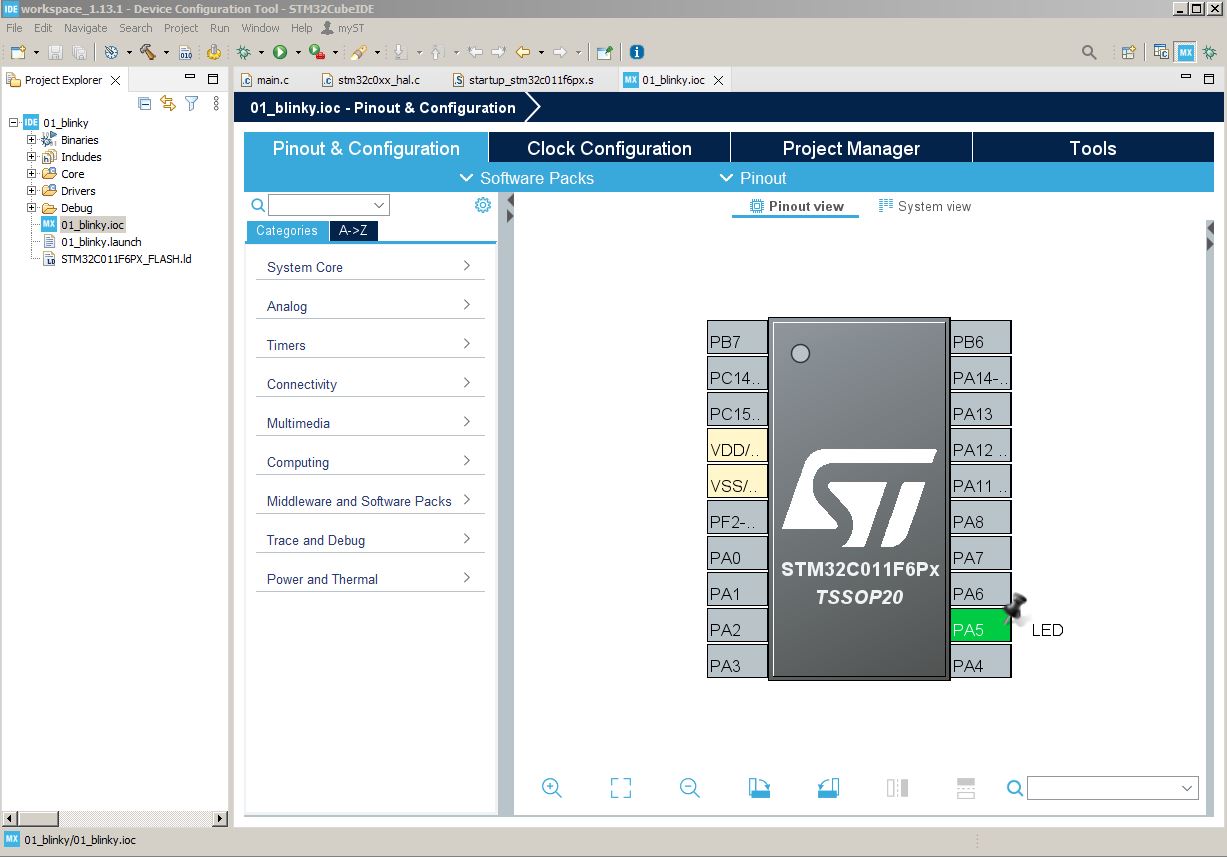 Doma se mě válel ST LINK adaptér a jeden kousek STM32C011 z tme.eu. Hledal jsem nějaký tutoriálek, jak začít. Nakonec jsem objevil toto od STM. Snad se někomu bude hodit...