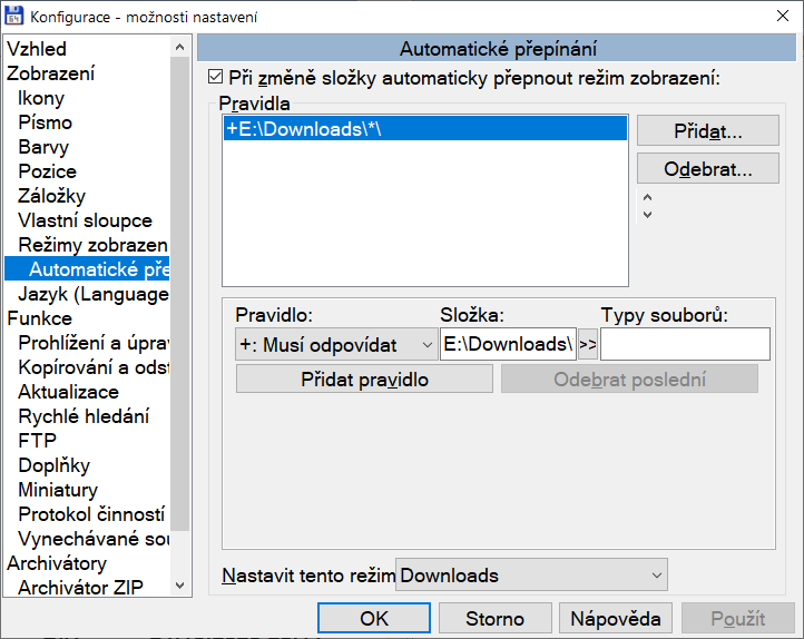 Vidíš, to mě nedošlo, do googlu jsem zadával např.: "Total Commander sort by date only one folder" a podobné variace. Vypadávaly na mne různá fóra s řešením, dost často tam bylo i to magické slovo "SOLVED", a bylo to třeba i někde na "https://ghisler.ch - Forum and wiki problems", ale to co jsem potřeboval já, tam nebylo (nebo jsem to nenašel). I kdyby mě to napadlo, napsat přímo jemu, nevím, jestli bych se nezdráhal...... No a teď když vím, že se to má týkat "Auto Switch Mode", tak už mne to navádí jiným směrem. Ještě jednou děkuju všem a zkusím se tím prokousat.