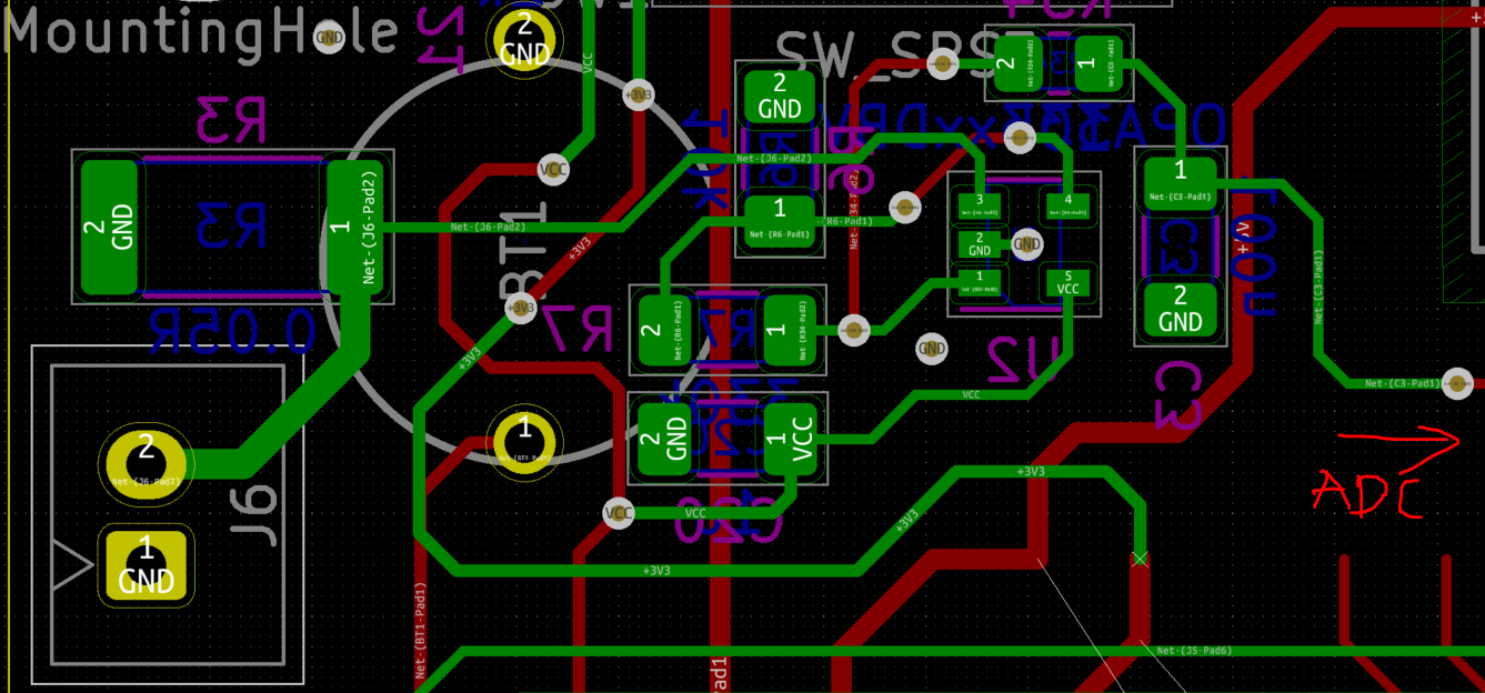 Vpravo dole ti chybí prokov na napájecím napětí, spoje jsou tuším moc tenké, pokud nemají alespoň 0.2 mm, tak výroba bývá drážší.
