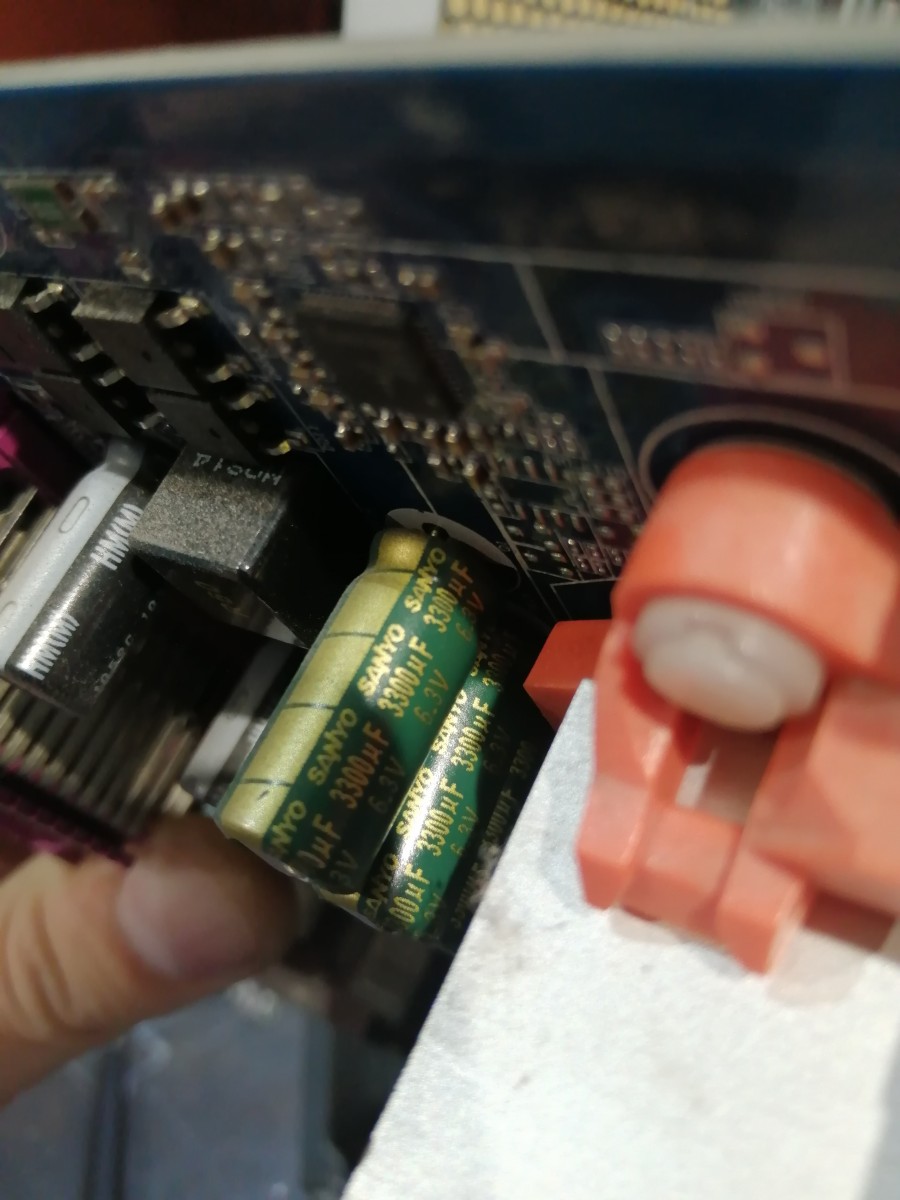 Zdravím vespolek. Měl bych dotaz ohledně výměny "nafouklých" kondenzátorů na základní desce PC. Mám počítat s nějakým problémem, nebo to půjde v pohodě vyměnit. PC teď funguje, ale díky těm kondenzátorům mu nedávám moc životnosti. Jeden je evidentně už vytečený, další dva nafouklé. Celkově na foto 2 horní a jeden dolní. Z fotky to tak nejde vidět. Ideálně bych je vyměnil všechny.