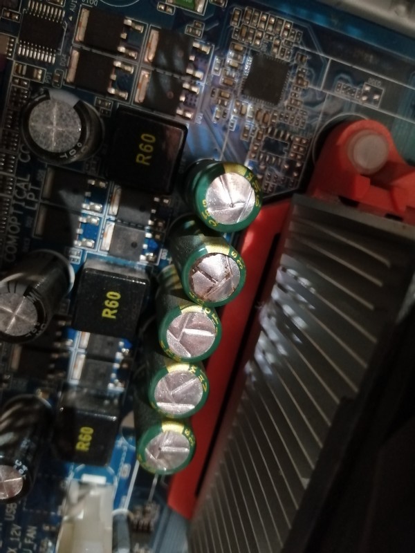 Zdravím vespolek. Měl bych dotaz ohledně výměny "nafouklých" kondenzátorů na základní desce PC. Mám počítat s nějakým problémem, nebo to půjde v pohodě vyměnit. PC teď funguje, ale díky těm kondenzátorům mu nedávám moc životnosti. Jeden je evidentně už vytečený, další dva nafouklé. Celkově na foto 2 horní a jeden dolní. Z fotky to tak nejde vidět. Ideálně bych je vyměnil všechny.