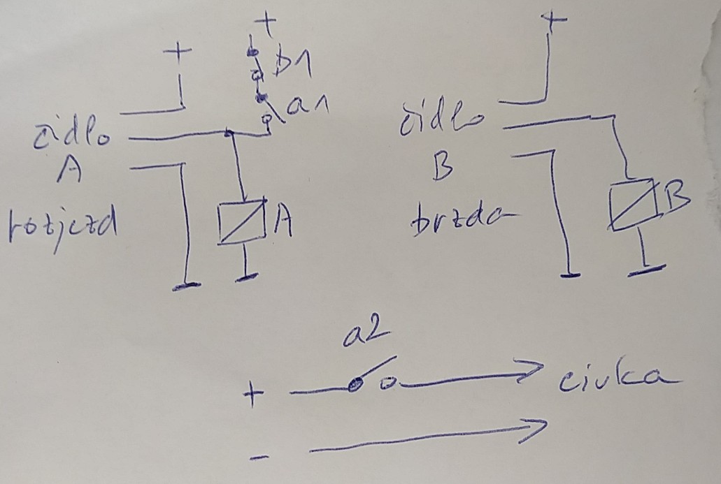 Jakmile se vrátí do klidové polohy, sepne čidlo A relé A a tak pořád dokola v tomto odstavci.