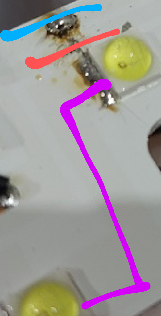 A fialová je propojení od druhé diody ke třetí. Ta bude taky OK když celý první modul svítí.