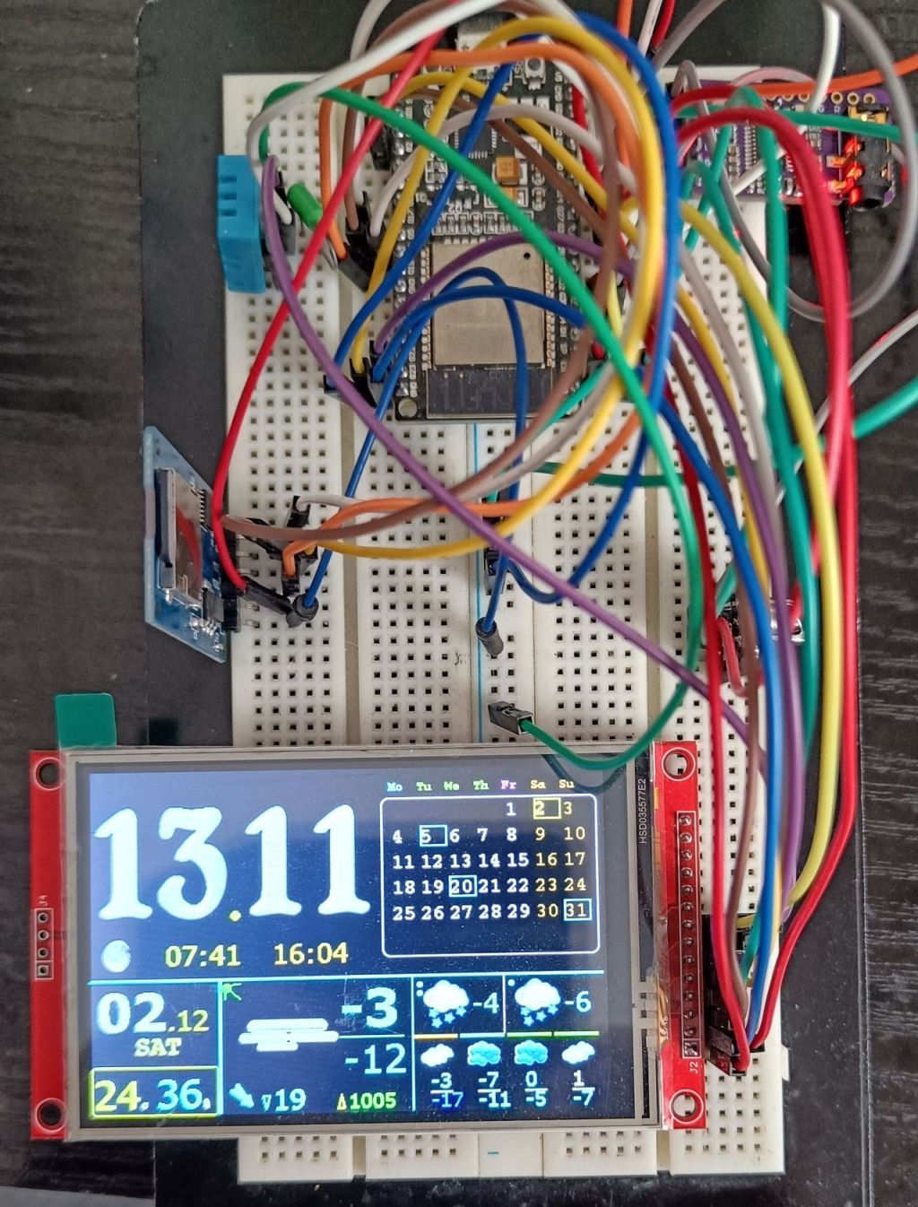 Je to kombinované. Displej potřebuje 5V i 3.3V, DHT11 a IR čidlo jen 3.3V zbytek 5V. Obě napětí jdou z ESP32.