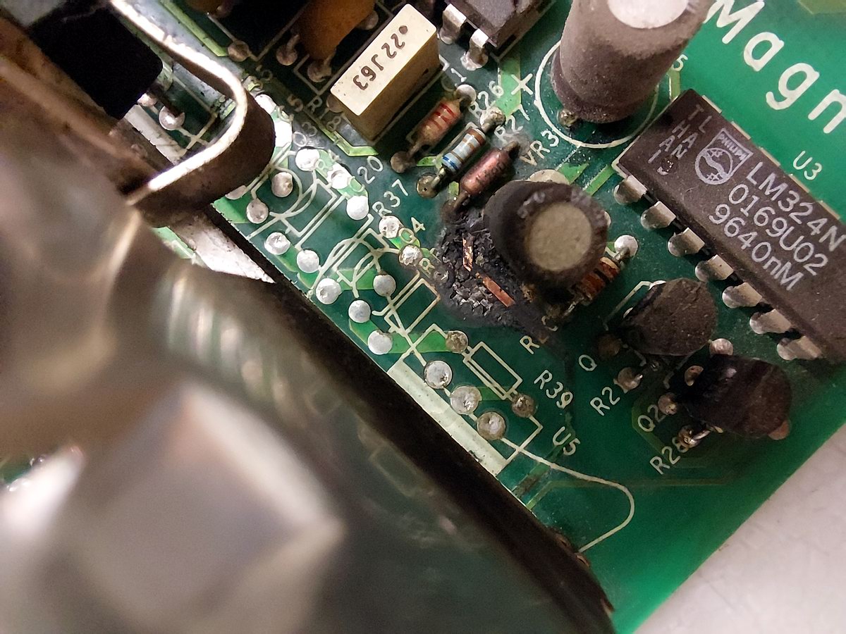 Potřeboval bych poradit a nasměrovat s odhalením závady, protože ta cestička skoro přepálená je jen důsledek nějaké jiné proražené součásky někde jinde a vzhlem ke složitosti toho zdroje to chce nějakou strategii. Přikádám foto celku pro představu.