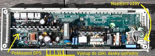obracím se s prosbou o pomoc při opravě zdroje. Ústředna je provozována příležitostně při provozu klubového modelového modulového kolejiště k telefonickému doruzumívání mezi dopravnami s přístroji s pulzní volbou a není připojena k telefonní síti. Ve čtvrtek po zapnutí zasmrděla, následně vypnuto. Pak provedena vizuální kontola a zjištěno poškození DPS zdroje viz. foto. Poté jsem to samostatně v polorozebraném stavu už odpojeno od základní desky zkusil připojit k síti 220v, že změřím rychle jednotlivé výstupy abych zjistil zdali voltmetrem alespoň není nějaká část výstupu stále živá. Toto jsem jsem nestihl, jelikož ihned po připojení se spoj na DPS rozsvítil a rozžhavil - tak jsem to ihned vypnul. Následně jsem po netu hledal nějakou dokumentaci - něco bylo na Táně, pak jsem našel pozoruhodné stránky: https://telefonanleitungen.de/php/downloadbereich.php