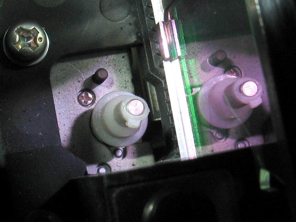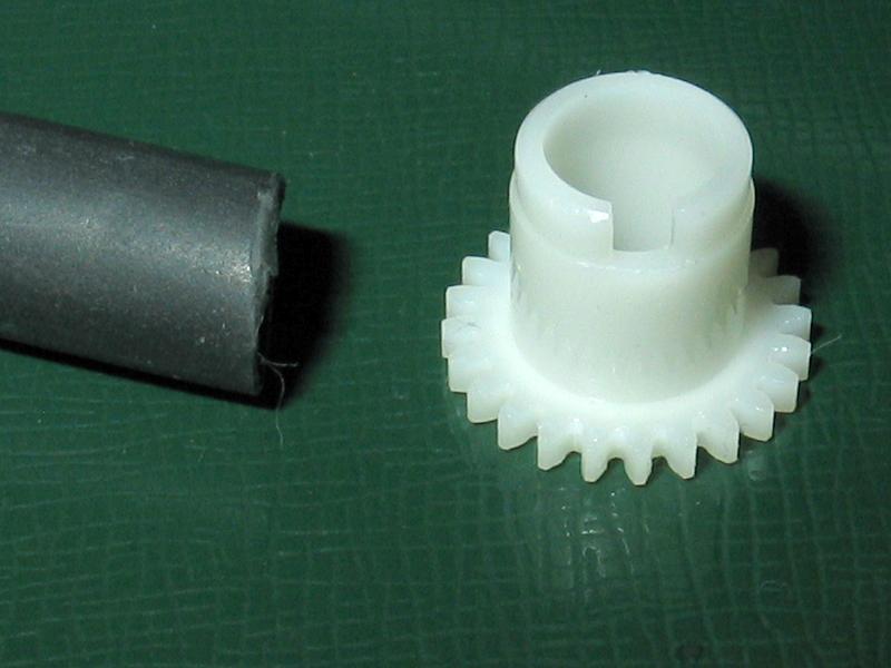 Opravil som aj pohon toho cinema filtra - vhodne ozubene koliesko som nasiel v mrtvej CD-ROM Toshiba XM-6402B, kde sluzilo na pohyb optiky. Stredna diera je ale vacsia, tak som dal na osku niekolko zmrstovaciek. Zacalo to fungovat, ale nasledne sa to este (od tepla) uvolnilo, tak som tam vrazil kus drotu. Nesmie to byt pripevnene natvrdo - motor sa zapina na fixny cas, takze to po dojazde na koniec musi preklzovat.