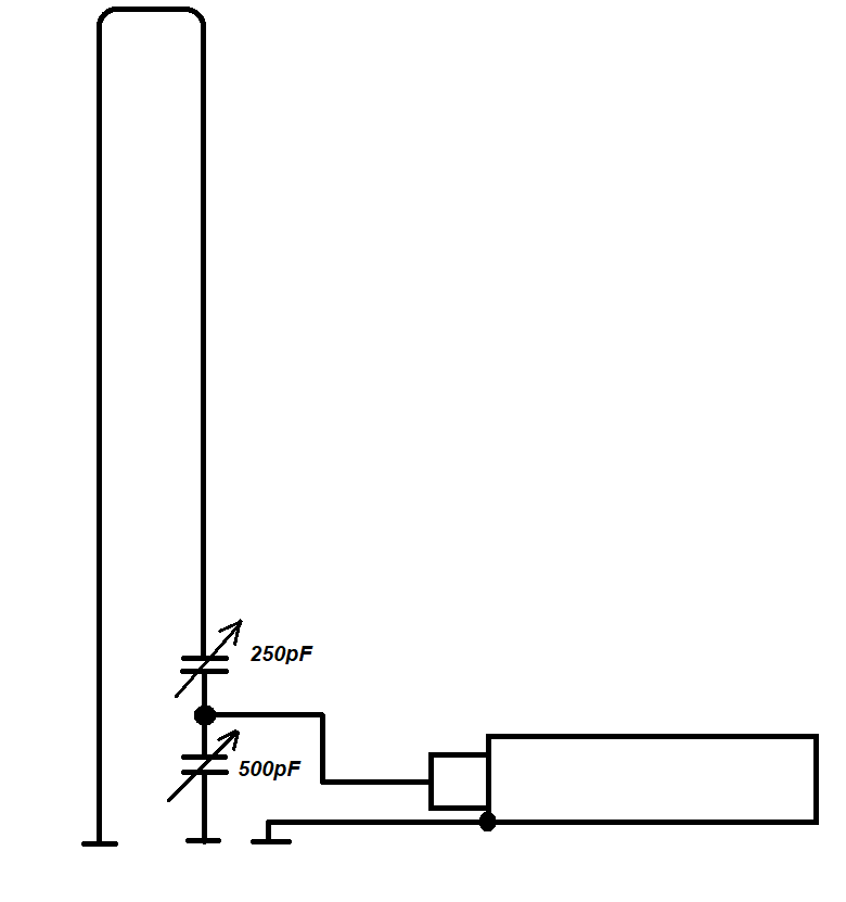 Nejdříve bych se chtěl zeptat, jak moc klíčovou roli hraje srovnání impedancí antény s přijímačem? Anténu připojuji přes koax 75 ohm a redukci viditelnou na fotce. Na internetu jsem se nedočet, jakou vstupní impedanci má vlastně zmíněný Tecsun (možná se mění s frekvencí signálu). Kromě toho jsem na propojení mezi koaxem a TV dvojlinkou použil obyčejný měděný vodič (se žlutou izolací na fotce), který by mohl také možná způsobit odrazy. Bylo by tedy lepší spojit koax s dvojlinkou napřímo a do toho spoje dát kondenzátor C2? V současné chvíli mám C2 osazený s hodnotou 1 nF, měřeno testerem konkrétně zhruba 980 pF. S využitím vztahu uvedeného v odkazu 2) a v Nachtmannově článku mi vychází 742 pF pro občanské pásmo. Doufám, že jsem správně dosadil. Za kapacitu C1 jsem dal jeho maximální 280 pF a frekvenci 27 MHz. Měl bych jej tedy spíš vyměnit? Kondenzátor C1 pochází z rádia Tesla Opereta, do antény jsem připojil 280 pF segment, druhý z leva.