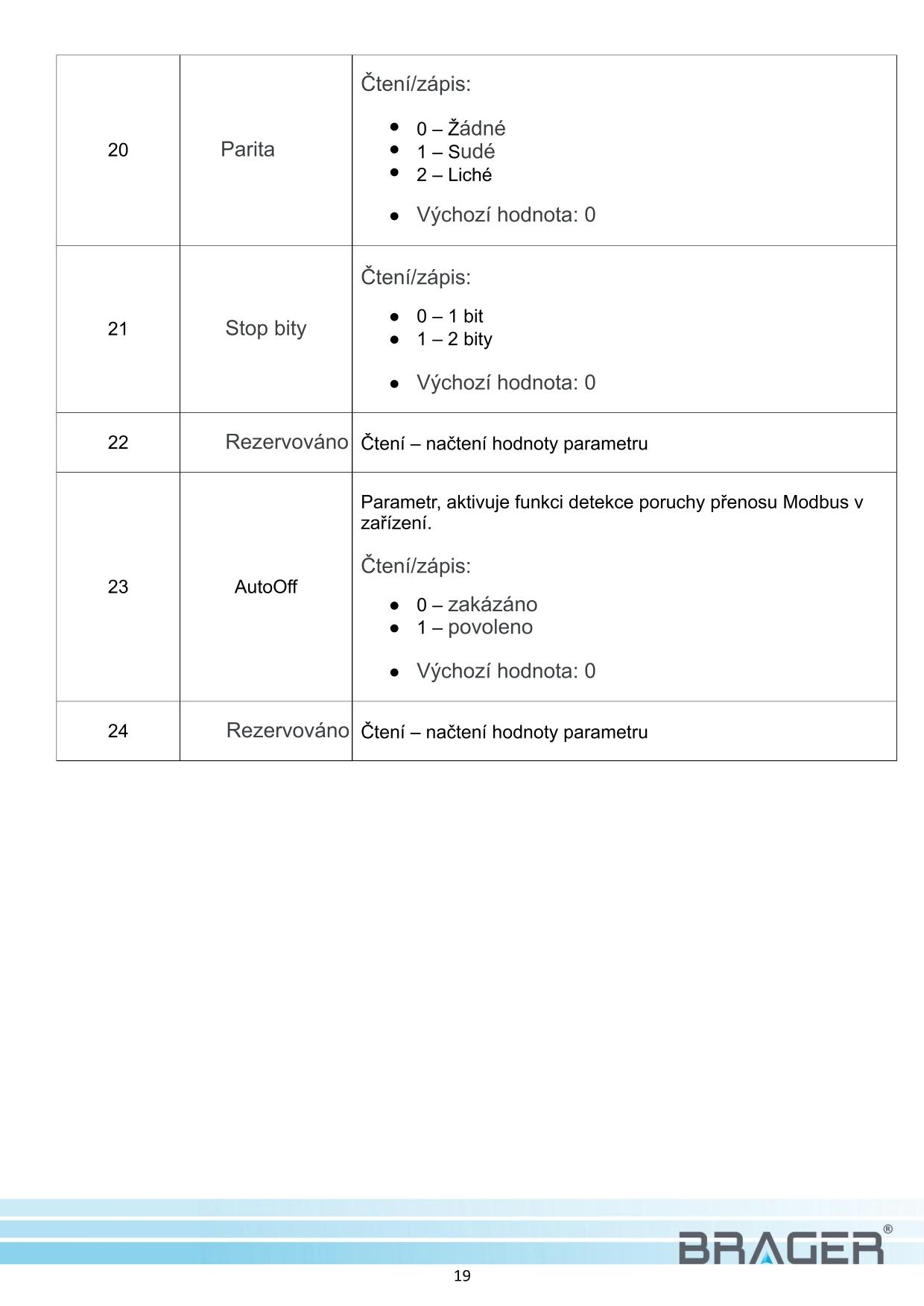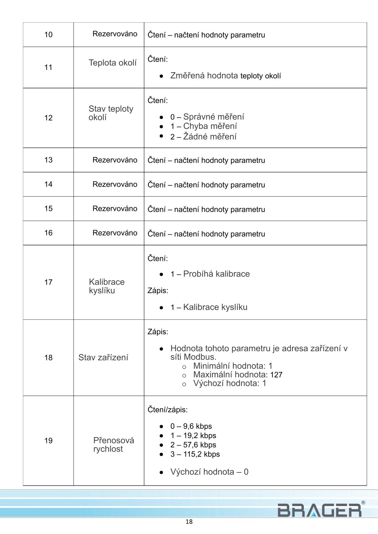 Pro komunikaci s jinými zařízeními než Brager, je možné nastavit režim Modbus podporující standard sériového přenosu RS485. V návodu je k tomu dokonce i nějaká charakteristika a popis registrů. Stránky návodu přikládám. Návod byl v Polštině a překlad jsem si dělal sám pomocí Google překladače a DeePlu, tak překlad nemusí být všude úplně perfektní.