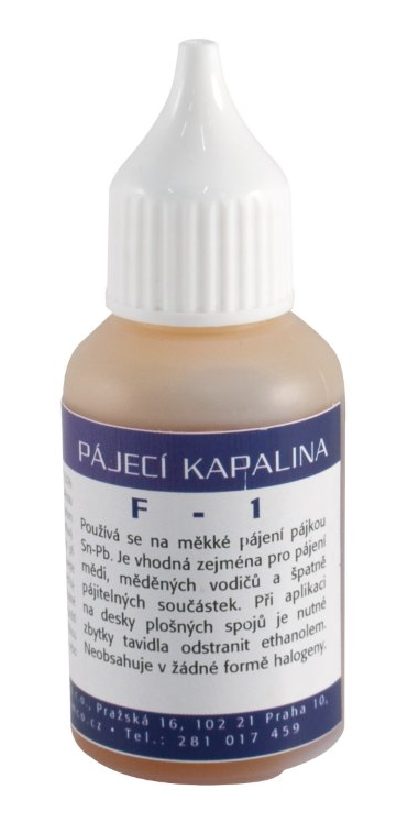 Já si taky vystačím jen s tavidlem v pájce. Ale mám koupený nějaký flux v inj. stříkačce - pro sichr. Dobré je to na slitý cín na nožičkách s mezerou 0.2 mm. Taky mám F1, ještě nikdy nepoužito. Ale bacha na F1, jestli se nepletu, obsahuje kyseliny. Musí se opláchnout, jinak ti sežere tišťák i se součástkami.