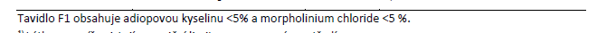 Tavidlo F1 obsahuje adiopovou kyselinu <5% a morpholinium chloride <5 %.