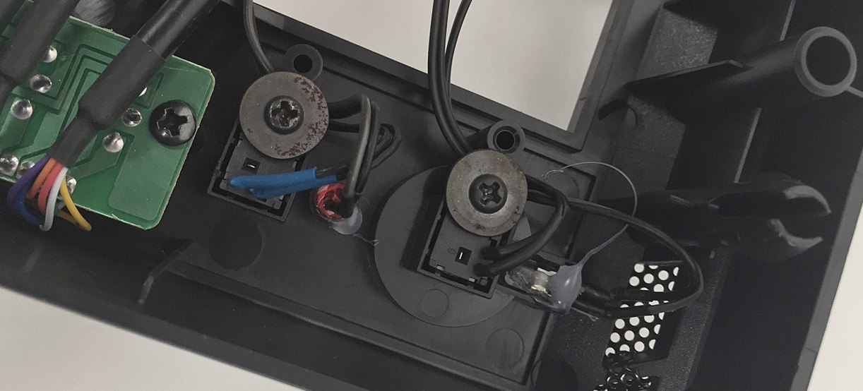 Neodpustil jsem si detailní snímek zadní strany spínačů Power a Reset, jenž jsou v rámu zafixovány pomocí vrutů s ocelovými podložkami, již nyní chycenými rzí. Přestože to nemá absolutně žádný vliv na funkci skříně, ani na její předpokládanou životnost, dobrý dojem to nedělá. Tipuji, že ve vlhkém prostředí se válely jen ty podložky a ne celá skříň.