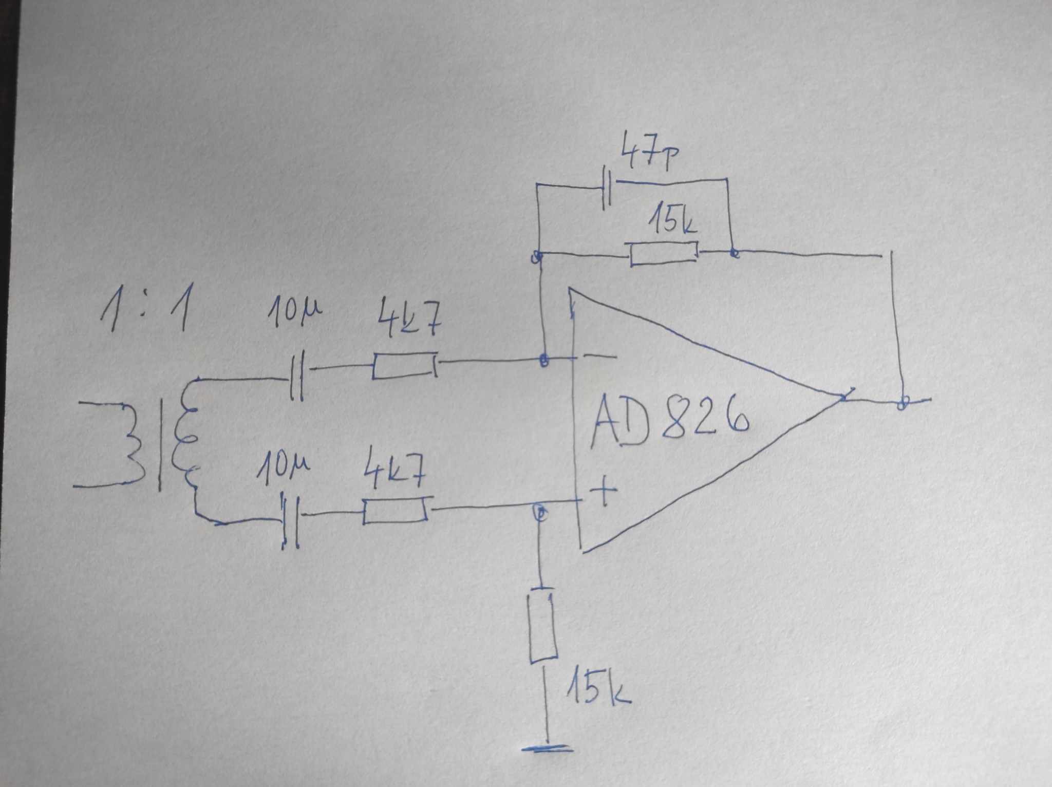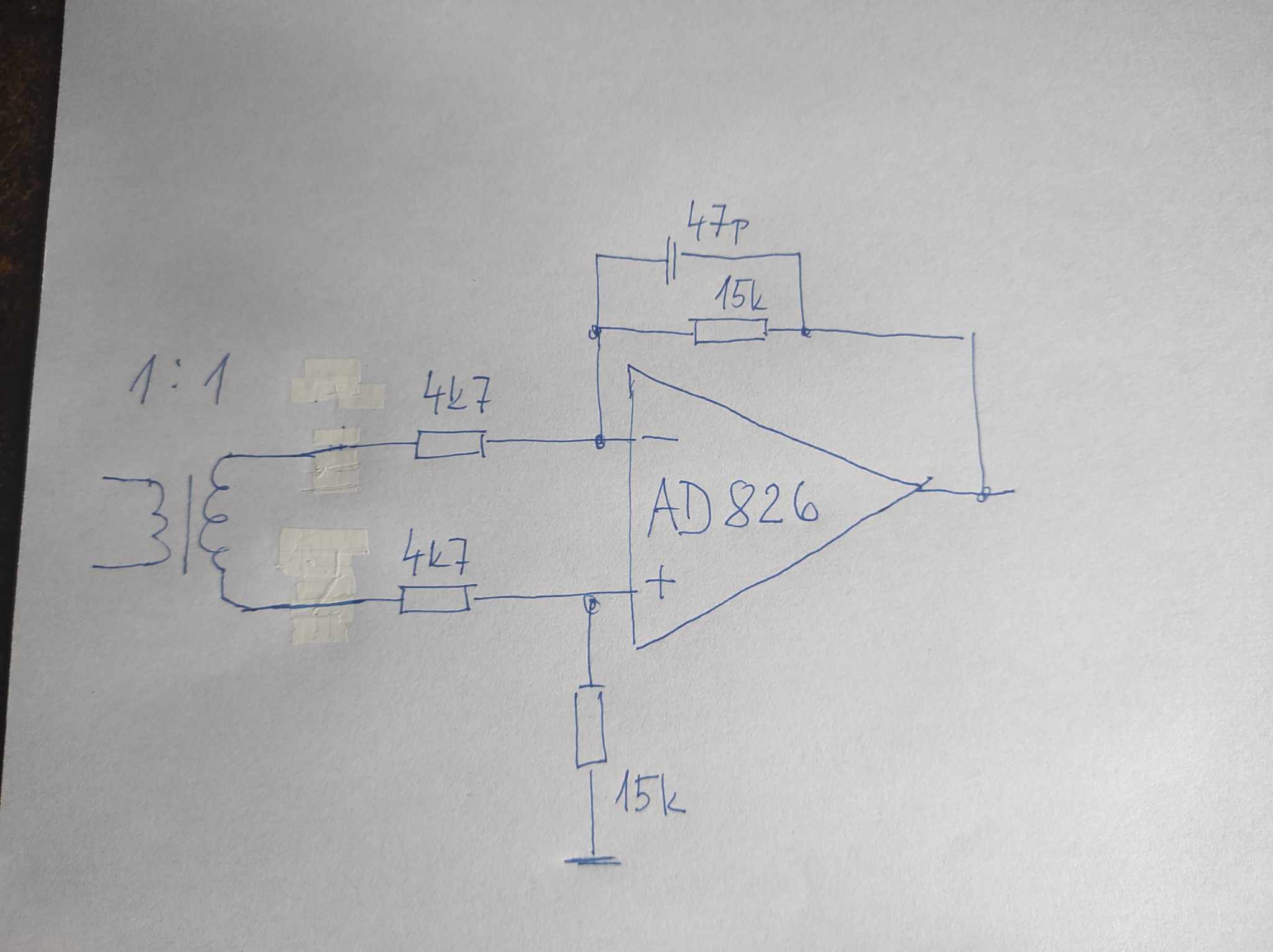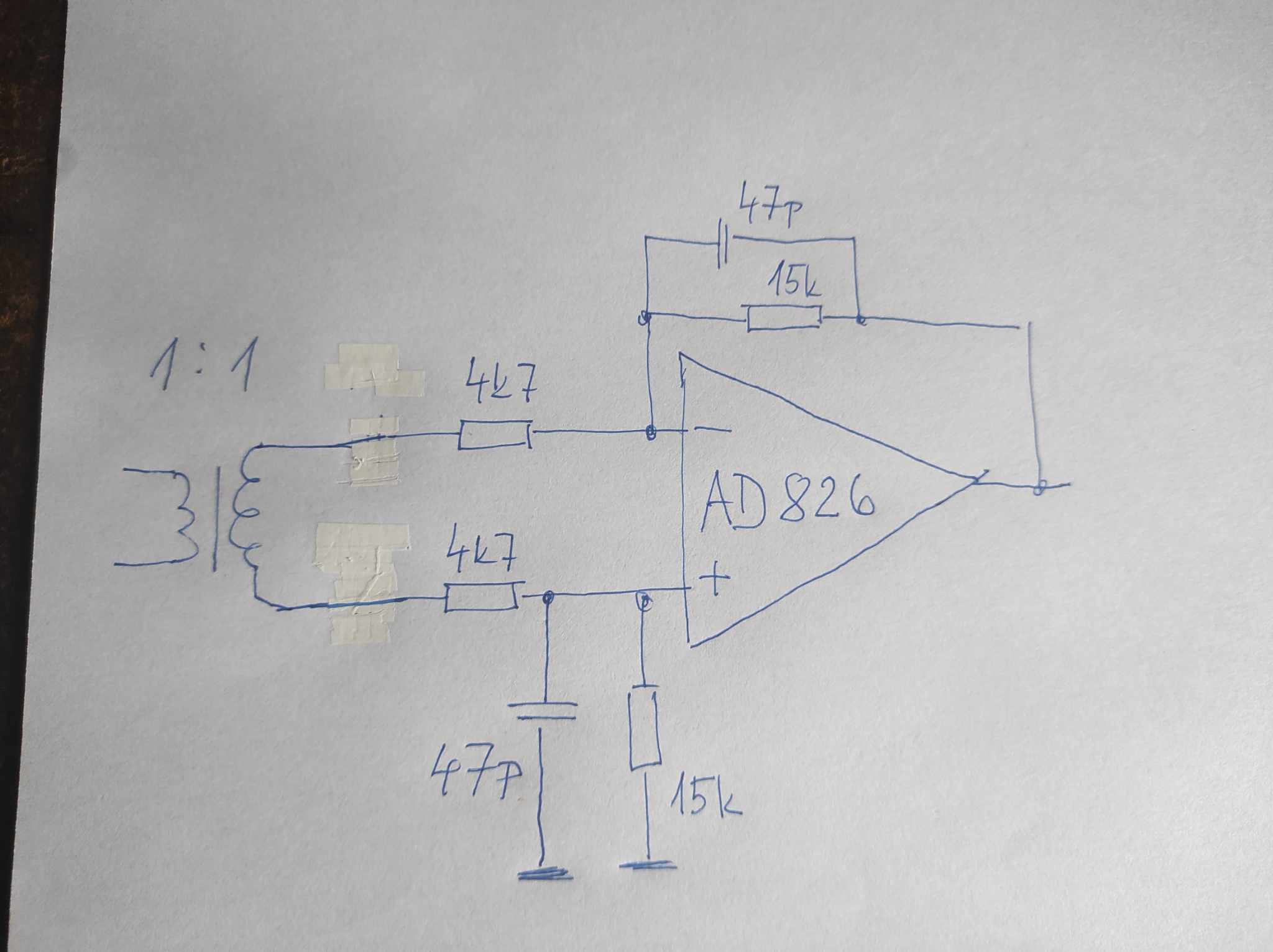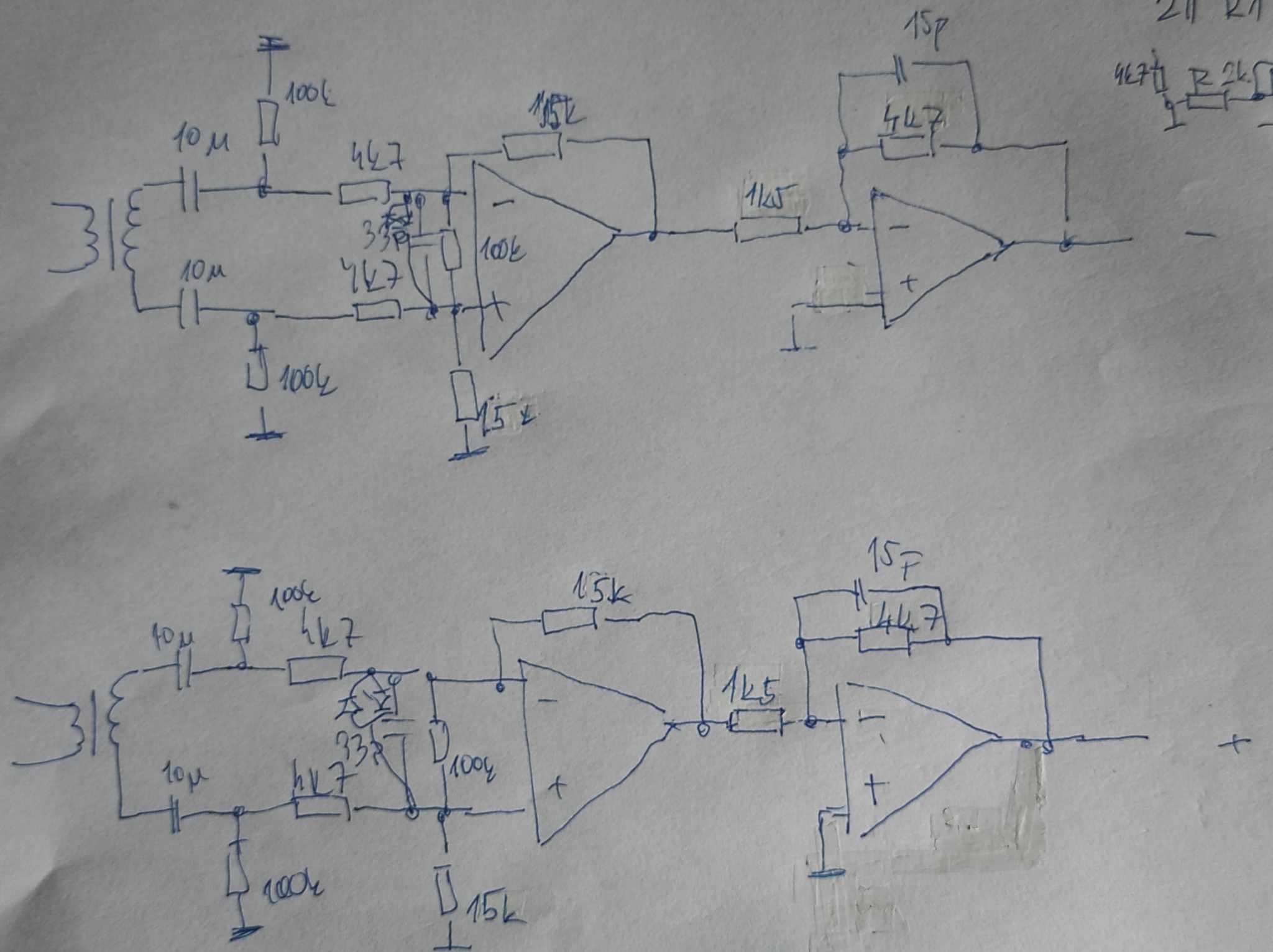 Potřebuji to kvůli tomu aby dráty vstupu nemusely být stíněný a šlo to přehozením polarity na vstupu trafa zapojit do můstku a předzesílení proto, aby amplituda čtverce na integrátoru mohla být 2V.