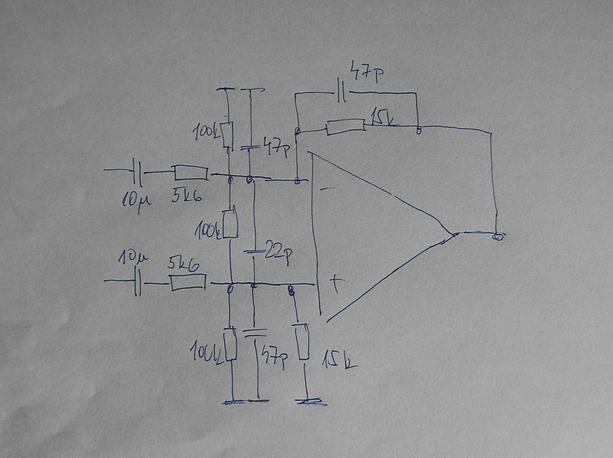 Nebo stačí jen jeden požírač 47pF mezi inv vstupem a výstupem OZ, nebo přidat druhý požírač 47pF paralelně k odporu 15k u neinv vstupu ?