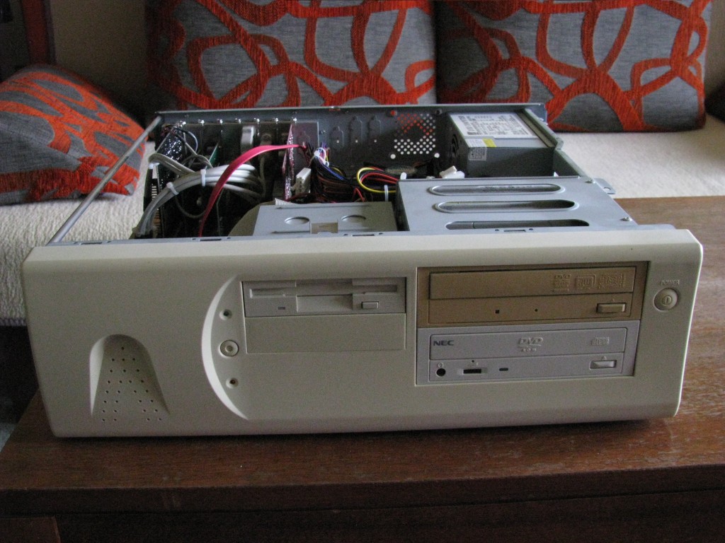 Povšimněte si, jak nám životodárné Slunce kazí vzhled našich výrobků (nejen aut). Na tom prezentační foto se stolem je ten samý počítač, jaký je v kolekci na začátku. Akorát mechanika DVD±RW nechutně zežloutla. Měl jsem před tu sestavu strkat pořádný kartón. Docela mě to séře.