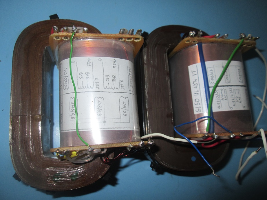 Trafa mám dokončenátřeba pro 2x 6L31, EL51 SE, 4xPL81, 2x PL84, 2x EL84 UL, 2x 6L50 CFB, 2x EL34 TRI. Nějaká už slouží a nějaká čekají hotová v šuplíku na svůj čas.