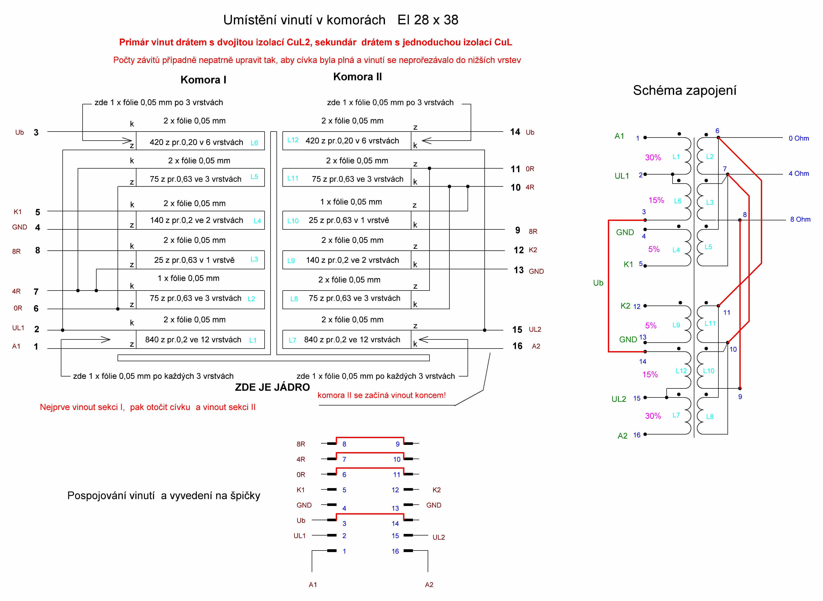 Mně se tenkrát pro UL osvědčila topologie: sek, celá polovina primáru, sek, celá polovina primáru, sek. Tedy celkem jednoduché vinutí 3 sekundáry a mezi tím 2 primáry vše na jednu kostru.
