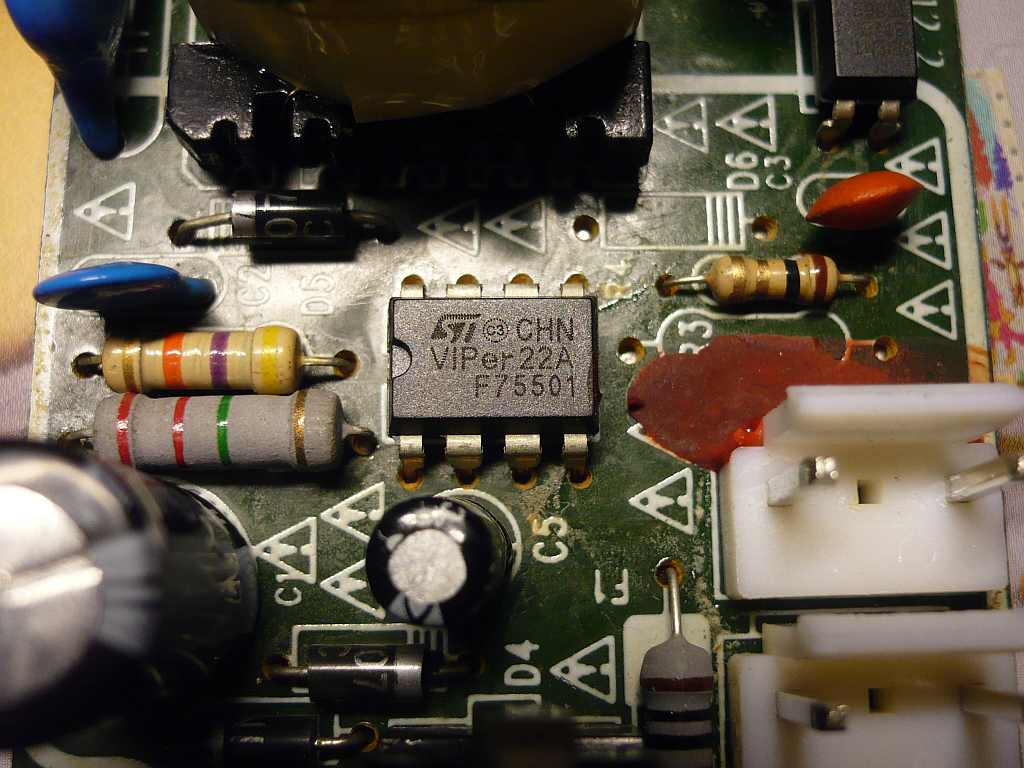 Prikladám nákres schémy (iba primárnu časť), fotku zdroja a falošného VIPer22A. Snáď som nič nepoplietol, budú 3 hodiny v noci, idem spať.