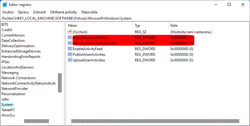 Když vlezu do nastavení schránky (clipboard), tak mám zašedlé přepínače a u toho zprávu "Některá nastavení jsou skrytá nebo je spravuje vaše organizace " (some of these settings are managed by your organization personal pc)