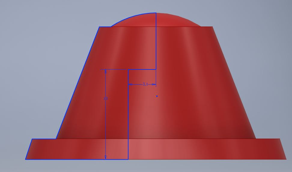 V případě,že chceš aby se drážka směrem k patě knoflíku rozšiřovala, směrem k ose zužovala a vzhledem ke kulovému povrchu zůstala konstantní, tak to už úplně snadné není. Další problém je vrtání kolmo na osu přes rádius a šikmou plochu. Modelování tvaru drážky přes zkosení ve dvou rovinách zanechává nedefinované objekty. Proto ty pomocné roviny. Je to pro mé šediny docela honička. Každé začátky jsou těžké. Na obrázku je příklad.