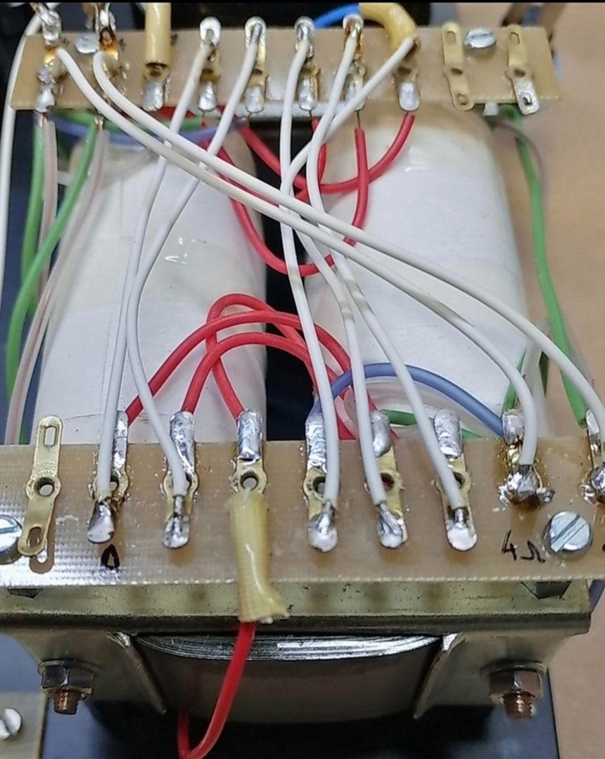 A takto vyzerá môj výtvor.. výstupák ala C..navyjal som ho podľa návodu 9wn67607 pre EI jádro. Ale po navinutí som zistil že nesedí prevod tak som jednu sekciu vinutí primáru nezapoji