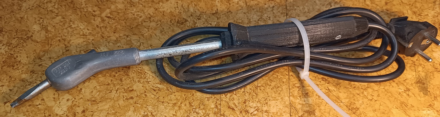 Asi by to šlo ufachčit takhle - dva kusy Cu páskoviny 2,5x5x150mm, jeden konec zbrousit, aby tam šel nastrčit vnitřek z čokolády ( díra 2,5mm), na druhej konec naletovat superflex kábl 2,5mm² ( modelářské potřeby), cca 0,5m, na konec očko, aby to šlo chytit do klasik trafopájky. Tak nebudu manipujovat s celou těžkou páječkou, ale jen s tím koncem.