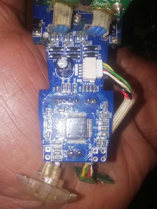 Zdravím! Švára mi donesl tuto akučku s tím, že nic nejde. Normálně to funguje tak, že svítí diody nabití bat, při lehkém stisku ovladače se rozsvítí světlo a při silnějším stisku jede regulace a BLDC motor. Tady nejde nic. Kontrola desky a součástí nic neukázala, proměření přívodů taky nic. Odpory vykazují hodnoty běžné. Kondesátory nejsou proraženy. Pod vrstvou silikonu nalezena součástka bez označení, na DPS je RT1. Na foto modrá šipka. Vykazuje nekonečný odpor. Mohla by to být pojistka nebo termistor. Po připojení na zdroj s omezením proudu a zkratováním RT1 se nic neděje. Jeden její přívod jde na zem a druhý na driver DRV91670, k němu jsem nenalezl dokumentaci. Napětí na DRV91670 je 10,4V. Deska má minimální odběr. Zatím vše ukazuje na vadný DRV a asi směr SD. Náhradní deska se už neprodává, zastaralý typ. Má prosím někdo nějaké zkušenosti nebo tip? Děkuji.