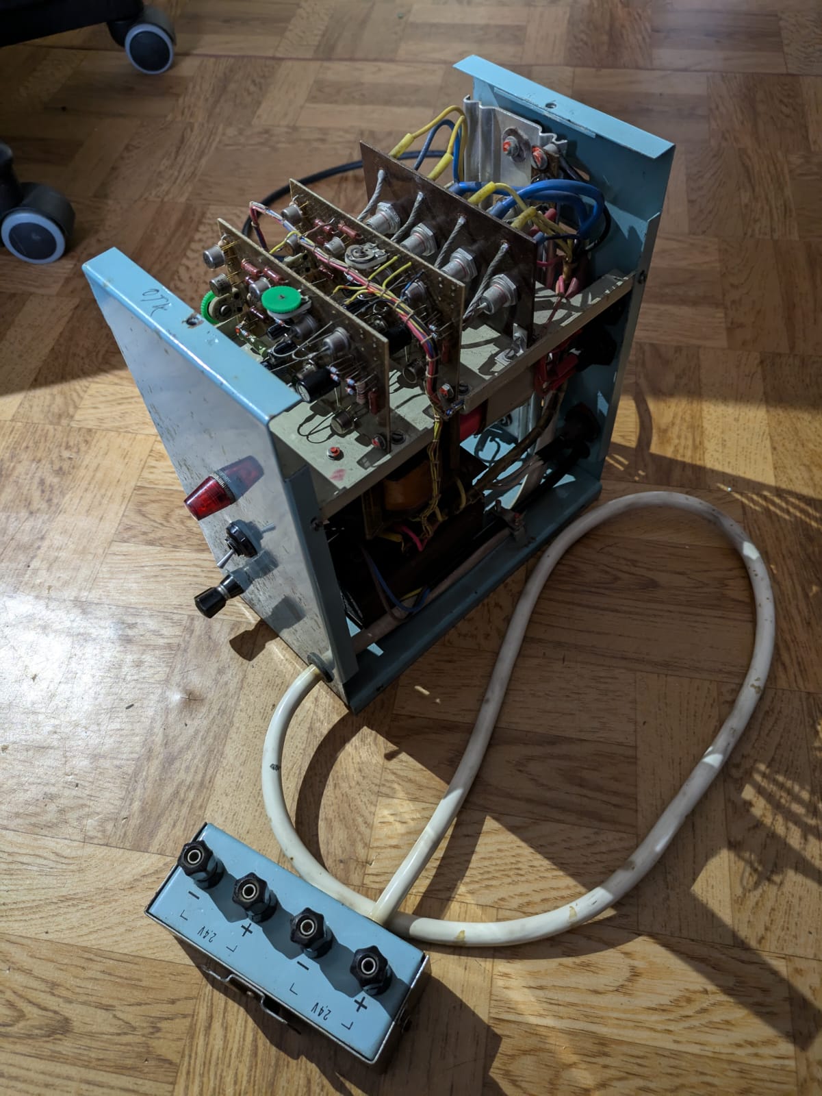 Trafa tam jsou kupodivu 3 a pokud to nepletu tak jsou tam 4 tyristory. Což dle něj je velmi zvláštní zapojení na to, že to má být stabilizovaný zdroj pro vysílačku.