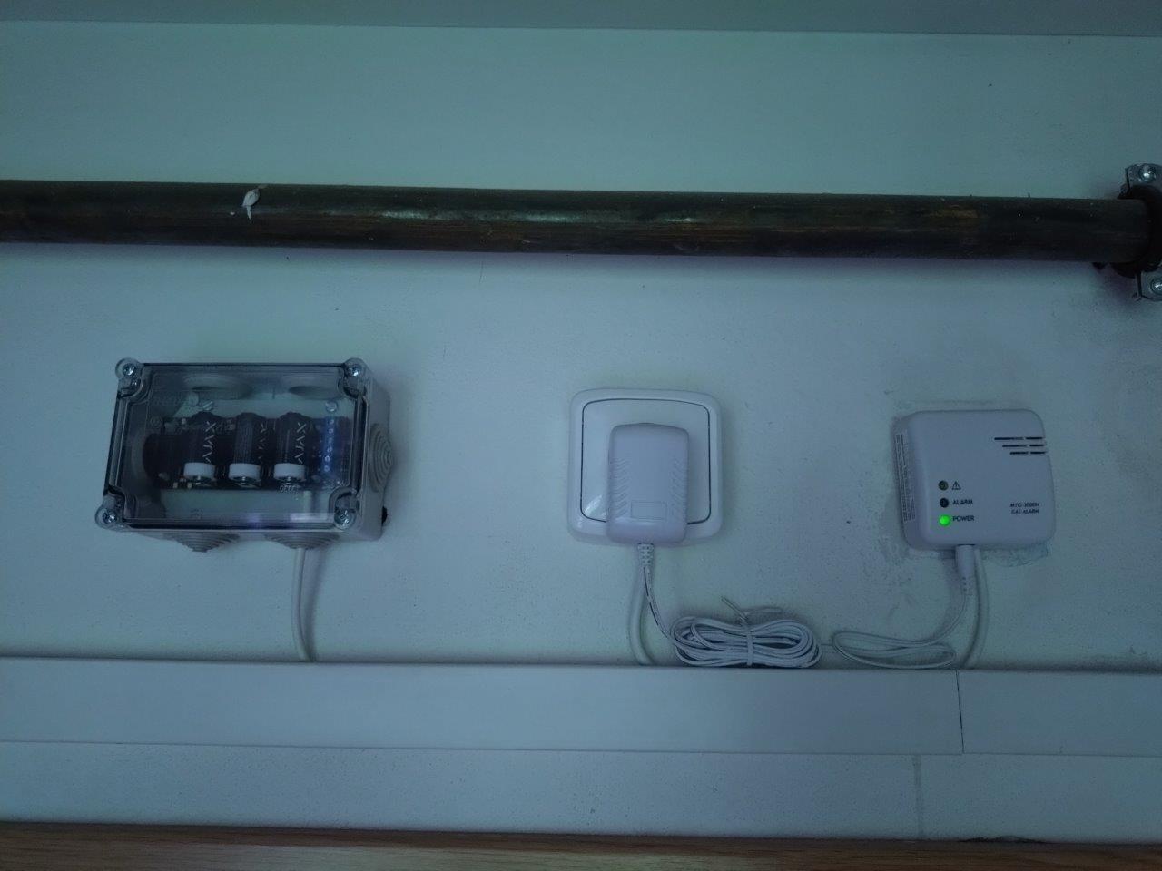Hlásič hořlavých plynů Garvan MTG-3000HR (relé) v kotelně mám integrovaný přes AJAX Transmitter do ústředny systému AJAX. V kotelně a na chodbě mám hlásiče kouře a CO AJAX FireProtect Plus. Na půdě mám jeden hlásič kouře AJAX FireProtect.