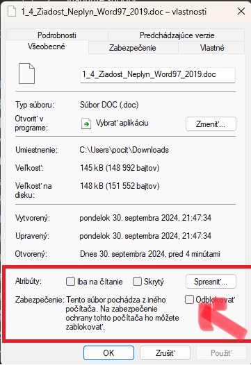Takže to nebude vlastnost přiřazená systémem. Podle mého názoru to je spíš nějaký skrytý parametr uvnitř toho dokumentu, na který různé editory reagují různě, a proto se to někomu projevuje jako blokace a někomu ne podle toho jaký editor používá. Tiktak může zkusit ten postup přes "Uložit jako..." jak už jsem psal. Případně ať zkusí použít ten dokument co jsem zde přiložil v ZIP archivu.